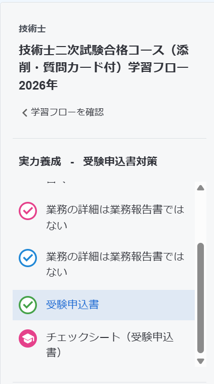独学だと後回しにしがちな書類作成を、早い段階で終わらせるよう促してくれるのは、通信講座を受講して良かった点の一つです。